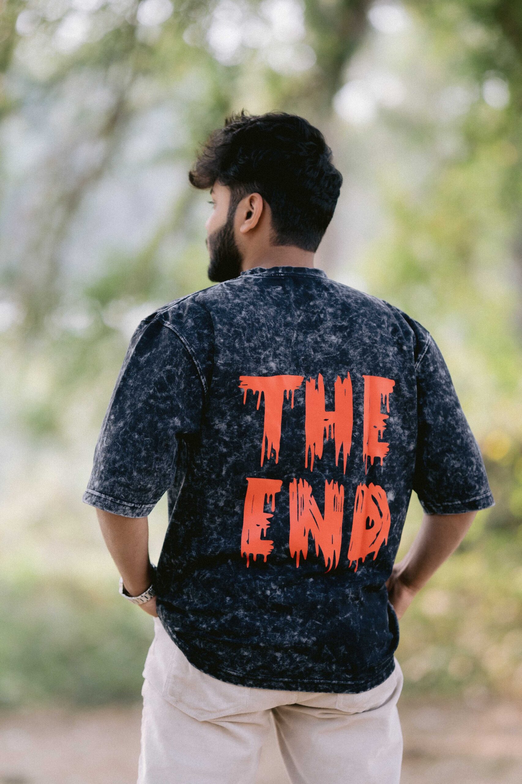• Versatile Design: Features a dark charcoal acid wash finish that provides a rugged, worn-in look, contrasted by high-impact, vivid red “THE END” typography in a dripping, horror-inspired font.